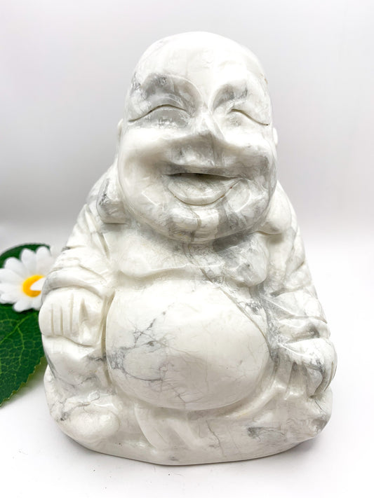 Howlite Crystal Laughing Buddha Carving (Hand-carved)