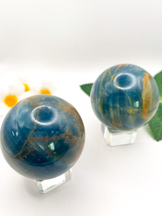 Lemurian Aquatine Calcite Sphere/ Argentinian Blue Onyx (Rare)