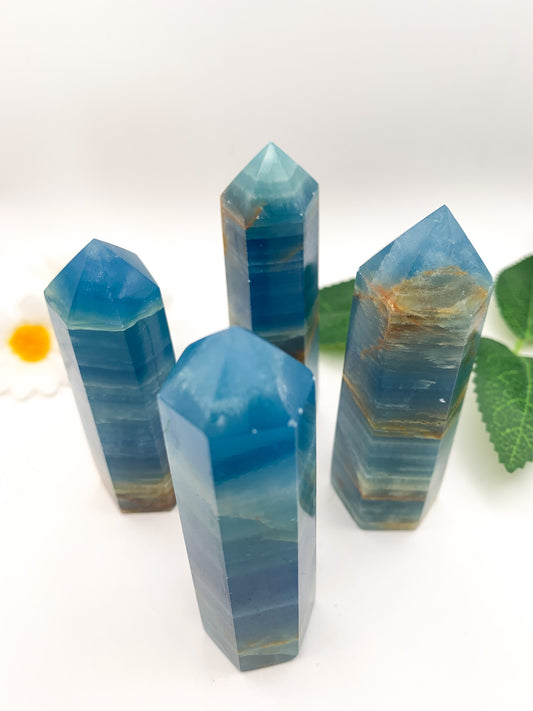 Lemurian Aquatine Calcite Tower/ Argentinian Blue Onyx (Rare)