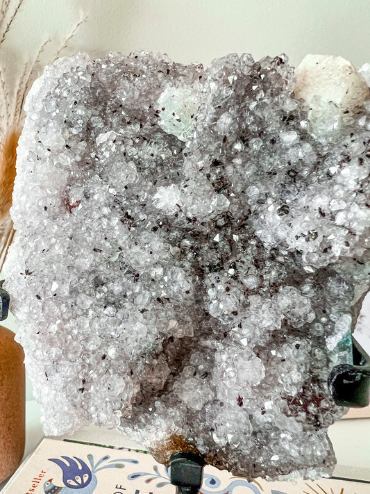 Amethyst Geode on Stand (Removable) with Calcite and Hematite